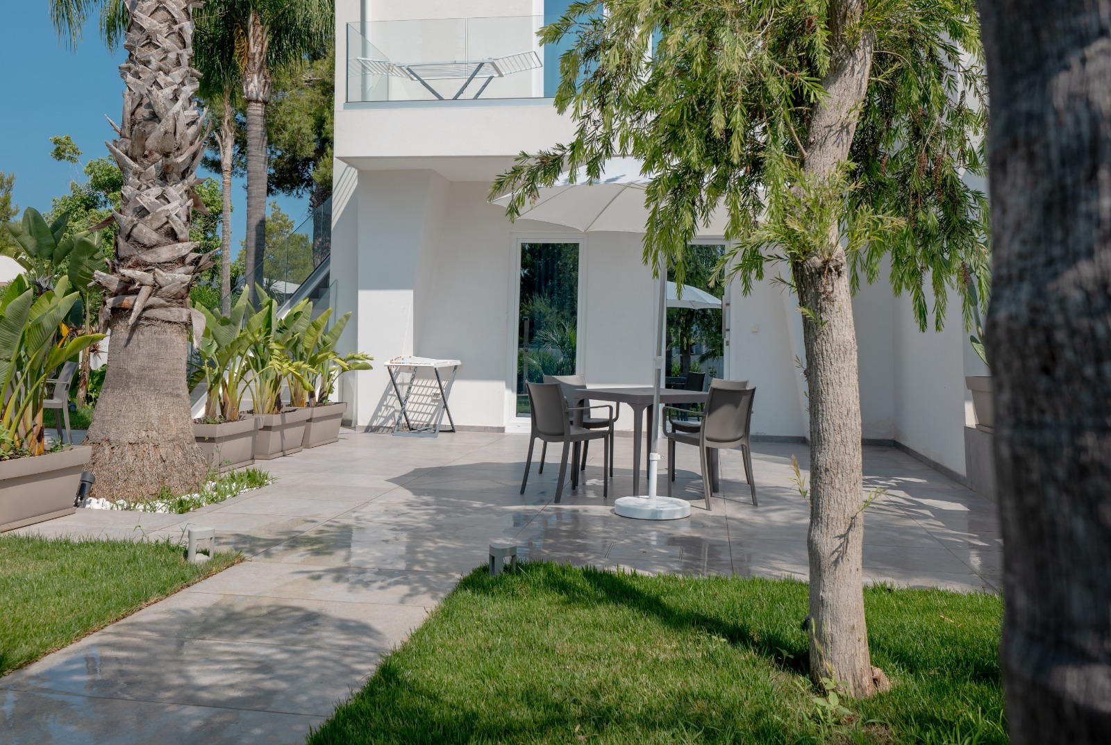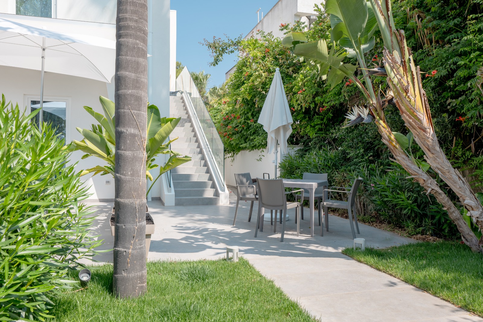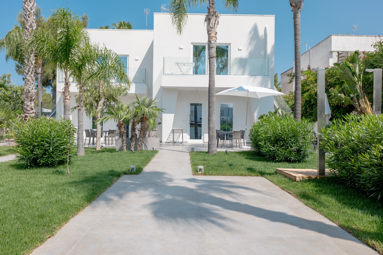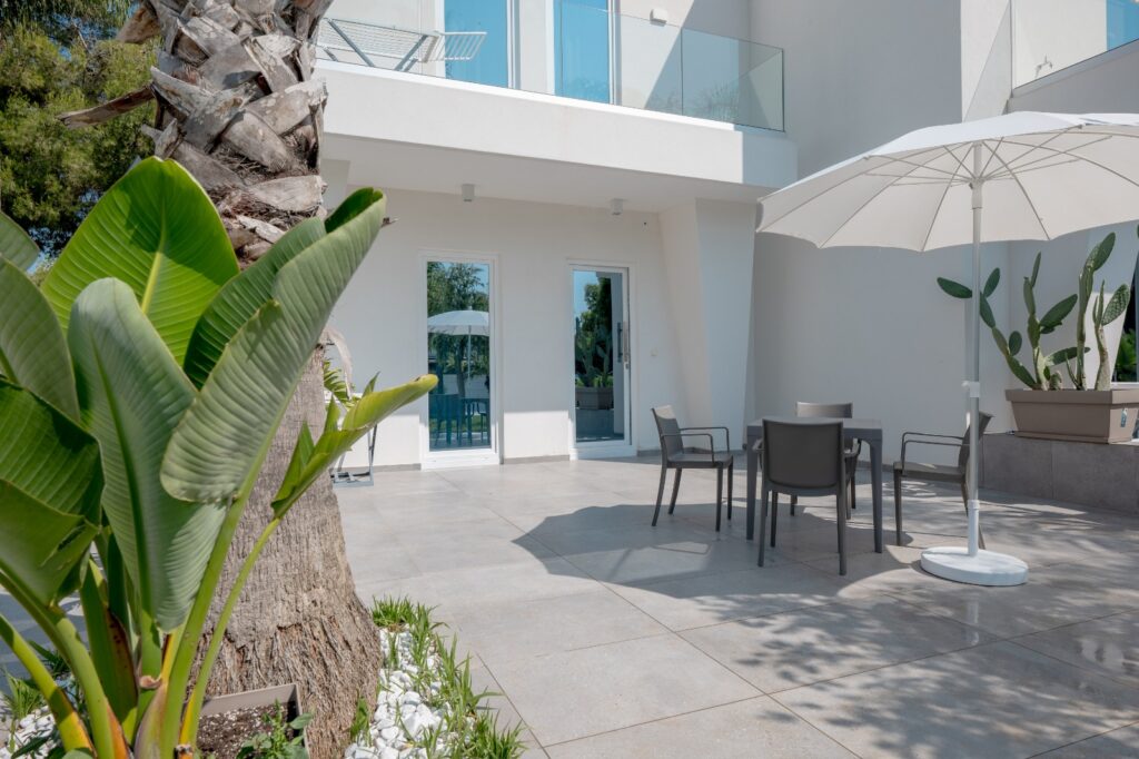 Lasciatevi conquistare dal fascino delle Villette Fontanelle Seaside, un’oasi di eleganza contemporanea dove ogni dettaglio racconta raffinatezza e comfort. Come una perla incastonata sulla costa salentina, questa Villetta al piano terra si rivela ai suoi ospiti attraverso un incantevole patio, mentre il mare, a soli 400 metri, sussurra promesse di giorni indimenticabili.